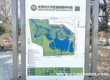 在海淀区树村公园南园北门,记者看到入口处竖立着一块深褐色的全景导览图展板。但由于长期暴露在户外,展板已严重褪色,仅能勉强辨认公园文字介绍和园内的大体轮廓,标注“您所在位置”的红点虽还醒目,但图上的图标以及图标解释文字都已经模糊不清,基本起不到导览的作用。