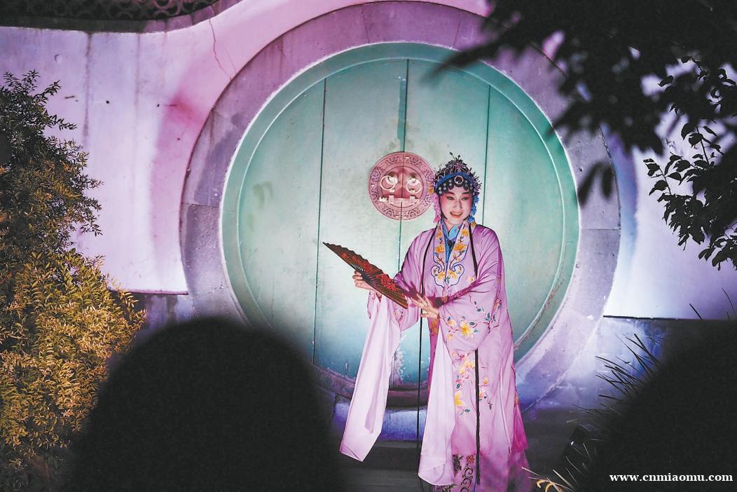 园林小径里,演出轮番上演。记者程功摄本周,北海公园品牌文化活动“印·静心”晚间专场焕新亮相。今年,该活动不仅将游览路线重新规划、优化升级,还首次将西天梵境景区纳入,串联起它与静心斋两景区精华夜景,使游客能够更加顺