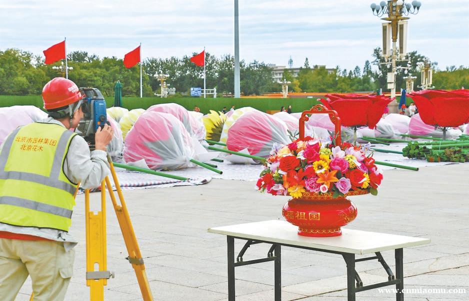 迎接新中国生日,天安门广场和长安街沿线年年摆花。昨天,市园林绿化局公布了今年的花卉布置方案,18米高的巨型花篮处处彰显和平的愿景,预计在10天后完工。