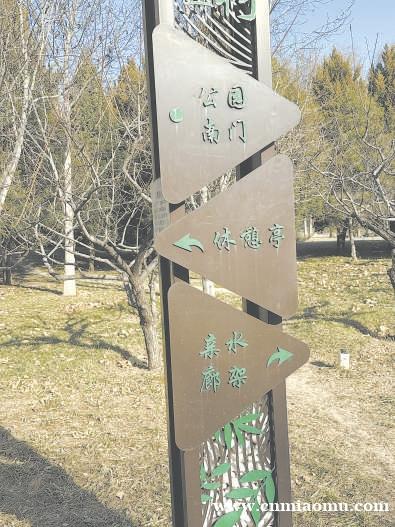 更让人困扰的是,这个偌大的公园内,除了出入口处有少数全景导览图外,园内道路旁几乎没有设置导览图,游客既无法定位自身位置,也难以修正行进方向。“公园大着呢,全走下来至少得俩小时,确实很容易迷路。”园内的一位保安说,尤其是冬天,园子里光秃秃的,到处看起来都差不多,更是不好定位,“那指示牌,我们根本都不看,也看不懂,就是靠走的次数多了,都熟悉了。”